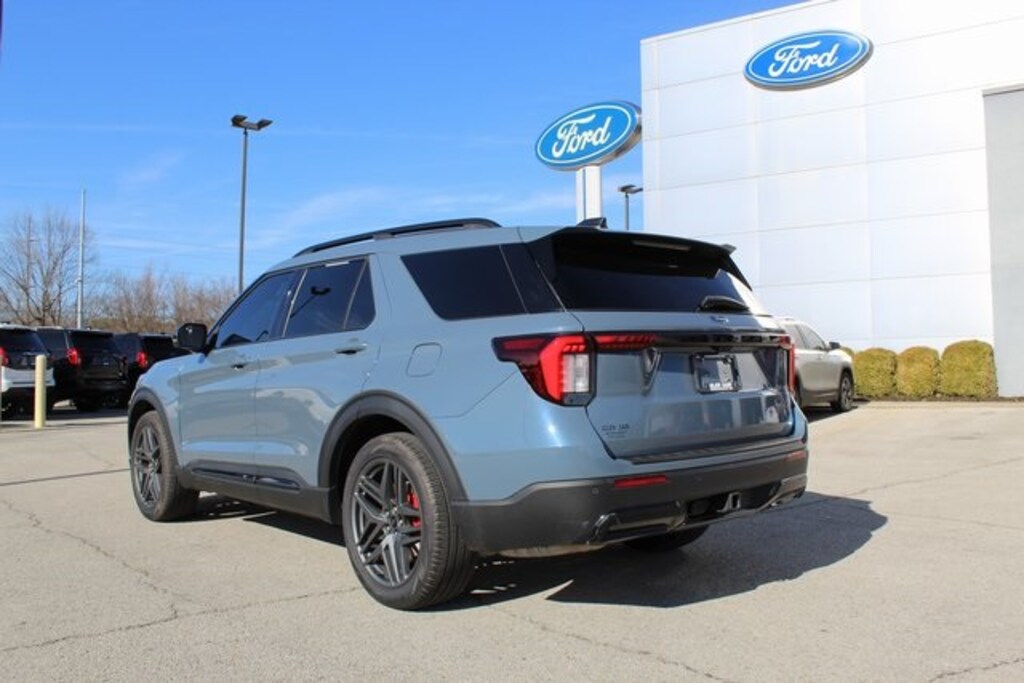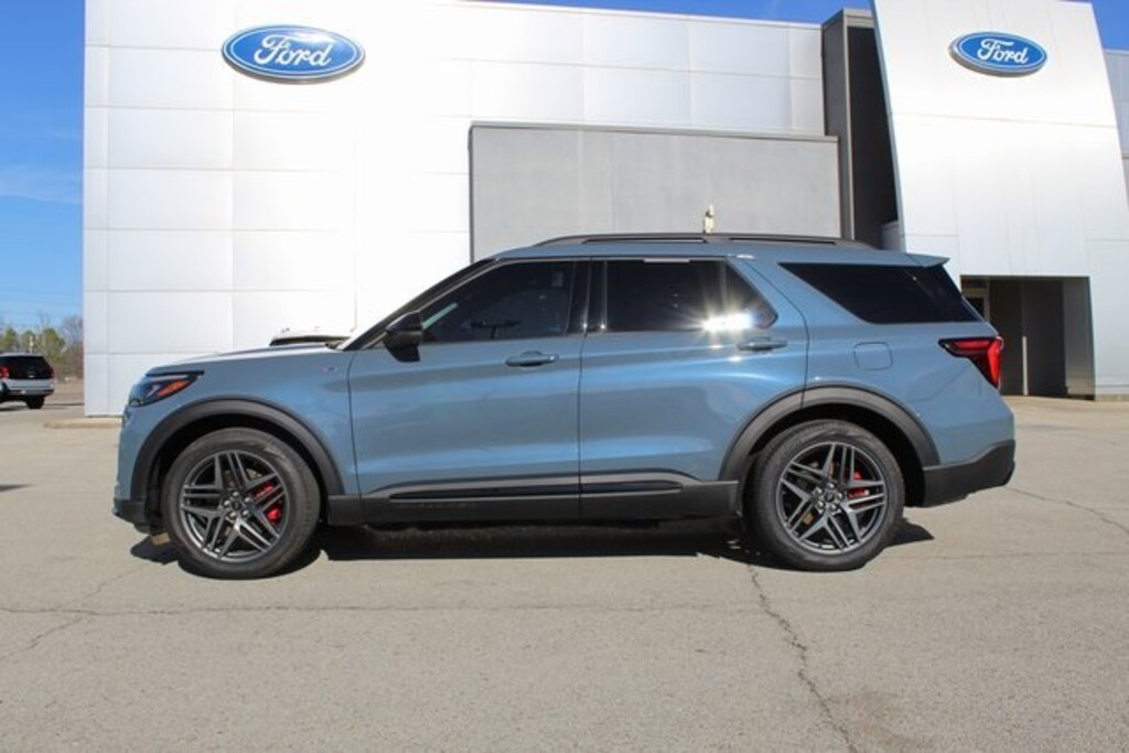 Vapor Blue 2025 Ford Explorer ST-Line RWD 10-Speed Automatic 2.3L EcoBoost I-4 110V/150W AC Power Outlet, 2nd Row Heated Seats, Ambient Lighting, Auto-Dimming Interior Rear-View Mirror, Equipment Group 300A Standard Package, Memory Driver's Seat, Performance Brakes, Power-Folding Sideview Mirrors w/Autofold, Premium Package, Rain-Sensing Wipers (Front Only), Red Painted Perf Front & Rear Brake Calipers, ST-Line Street Pack, Wheels: 21" Magnetite-Painted Aluminum, Wireless Charging Pad.