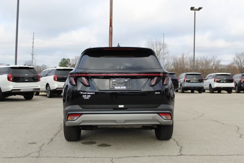 Phantom Black 2025 Hyundai Tucson SEL Convenience AWD 8-Speed Automatic with SHIFTRONIC 2.5L I4 DGI DOHC 16V LEV3-SULEV30 187hp AWD, 18" Alloy Wheels, 4-Wheel Disc Brakes, 6 Speakers, ABS brakes, Air Conditioning, Alloy wheels, AM/FM radio: SiriusXM, Automatic temperature control, Dual front impact airbags, Dual front side impact airbags, Emergency communication system: Bluelink+, Front anti-roll bar, Front Bucket Seats, Front Center Armrest, Front dual zone A/C, H-Tex Seat Trim, Heated Front Bucket Seats, Heated front seats, Leather steering wheel, Low tire pressure warning, Occupant sensing airbag, Option Group 01, Overhead airbag, Power driver seat, Power steering, Power windows, Radio data system, Radio: AM/FM/HD Audio System, Rear anti-roll bar, Rear side impact airbag, Rear window defroster, Rear window wiper, Remote keyless entry, Split folding rear seat, Steering wheel mounted audio controls, Variably intermittent wipers, Wheel Locks.
